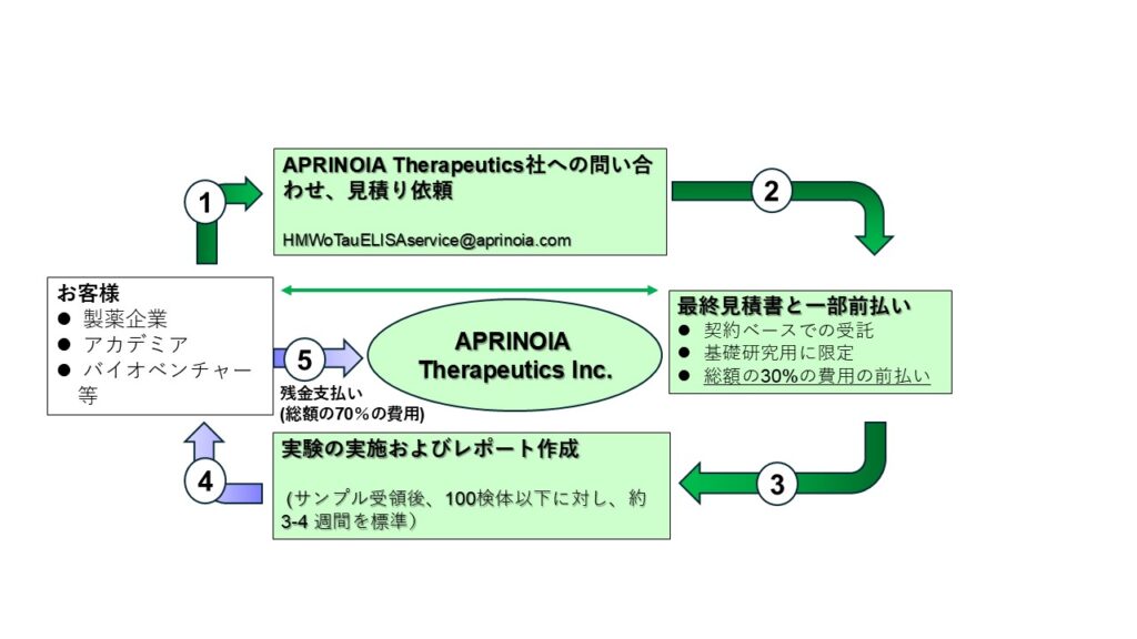 弊社の新規高感度ELISA、APR.HMWoTauELISAは、 疾病特異的にHMWoTau分子種を検出します。APR.HMWoTauELISAは、マウスモノクローナル抗体APNmAb005を用いており、図1に示すようにチオフラビンで染色される直径30 nmの高分子オリゴマータウ蛋白(HMWoTau)を認識しました(図1A, B)。APRI.HMWoTauELISAは、アルツハイマー病(AD)由来のHMWoTau分子種をサンプル希釈依存的に検出しました(図2A)。また、ADタウ病理像を示すブラークステージVとVI期の前頭葉新皮質AD脳(リン酸バッファー抽出物)においてHMWoTau分子種を検出しました(図2B)。組換え型ヒトタウ由来HMWoTauを用いたAPRI.HMWoTauELISAの標準直線は、定量下限値が0.3 pg/well (3 pg/mL)で良い直線性を示しました(FASEB J. 2024 Nov 30;38(22): e70160より引用)。APRI.HMWoTauELISAは、ヒトタウ蛋白をもつトランスジェニックマウスのHMWoTau分子種や細胞培養系のHMWoTau分子種も検出します。
